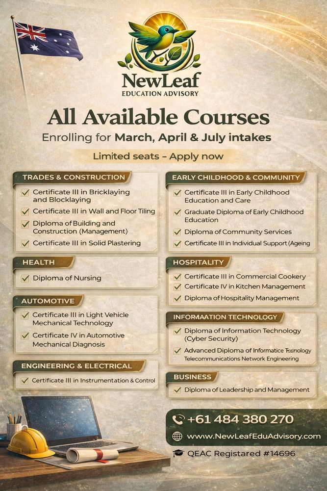 At New Leaf Education Advisory, Our mission is to provide ethical, transparent, and personalised education guidance that helps international students make informed study decisions and successfully pursue quality education in Australia.